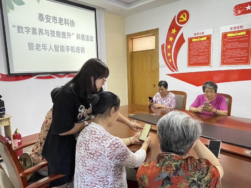 随着现代科技的快速发展,智能手机已成为大众必备的通讯工具,但老年人对运用智能技术还存在一定的困难,为帮助他们跨越数字鸿沟,有效提升老年群体数字技能,7月7日,泰安市老科协“数字素养与技能提升”科普活动暨老年人智能手机培训,分别在“夕阳红”科技服务站、上高街道东岳社区举办,约50位社区老人参加了培训。