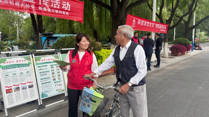 9月26日,新泰市科协联合市林业中心、市机器人协会、爱尔眼科医院等单位,以“科技改变生活 创新赢得未来”为主题,开展全国科普月集中宣传活动,把科普知识送到群众身边,实现科技“零距离”。
