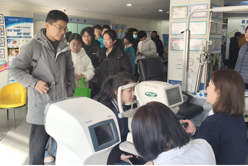 随后,同学们来到医疗设备展示区,近距离观察眼科诊疗设备。科普馆的专业人员详细讲解了这些设备的工作原理和使用方法,并现场为同学们进行了眼视光检测,让同学们对医疗科技有了更直观的认识。在互动体验环节,同学们还亲自操作部分简易设备,切身感受科技的魅力。