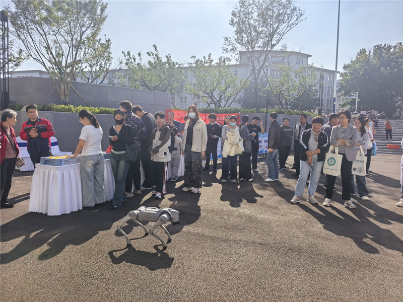 活动现场特别设置了科技馆科普设备体验区,成为本次活动的亮点。在机器狗展示互动区,科技人员向观众讲解了四足机器人的运动控制原理、环境感知技术等人工智能知识。孩子们通过指令与机器狗进行趣味互动,在沉浸式体验中理解编程逻辑和智能算法如何赋能现代生活,激发了对人工智能技术的浓厚兴趣。