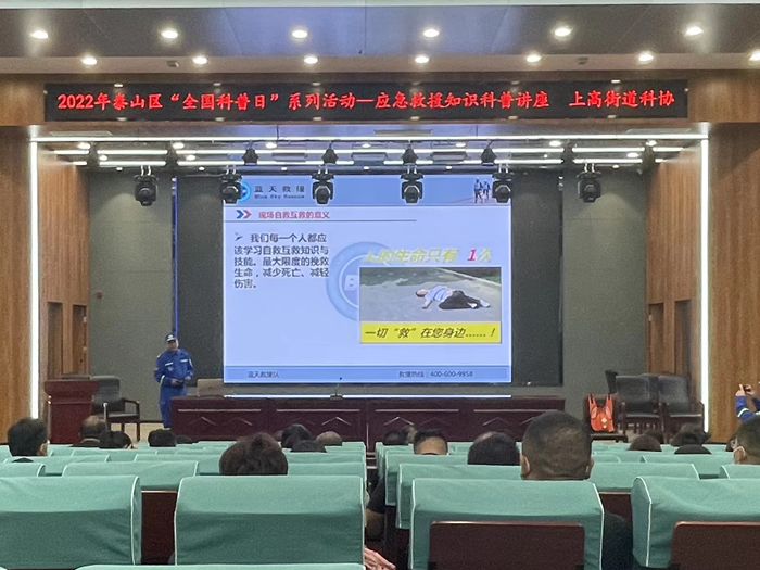随着社会的不断发展和科技的进步,人类危重急症和意外事故的发生也逐渐呈上升趋势,特别是在各种自然灾害面前,人类显得渺小无力。为了增强居民群众的安全意识,学习遇到突发状况和险情时自救以及救助他人的方法,8月25日上午,全国科普日活动期间,泰安市泰山区科协联合上高街道特邀泰山区综合应急救援服务队在北上高会议室开展应急救护知识普及公益讲座。