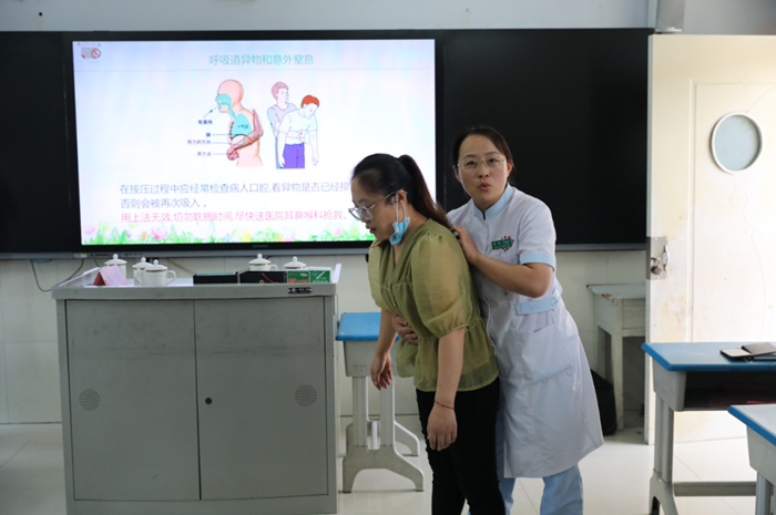中医二院内四科科普专家陶可胜主任以《治未病与三级预防》为题,讲授中医治未病的理念、三级预防、健康四大基石等内容。急诊科宋润德主治医师针对常见急症的中西医救治(心肺复苏、呼吸道异物阻塞、烫伤、抽搐、外伤等)进行现场授课,急诊科科技志愿者宋佳护士长现场演示心肺复苏并互动,手把手教授如何在黄金时间进行心肺复苏抢救科普知识。