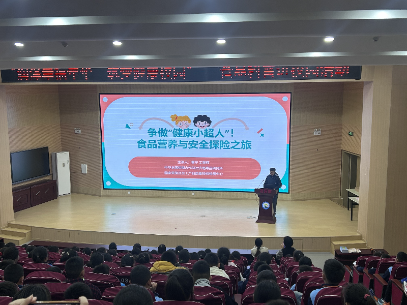 活动伊始,一段生动有趣的科普动画迅速吸引了学生们的注意力,以直观形象的方式揭开了食品安全与营养奥秘的序幕。随后,来自中华全国供销合作总社济南果品研究所国家果蔬及加工产品质量检验检测中心的曹宁工程师,为同学们带来了一场内容丰富的食品营养与安全科普讲座。专家用通俗易懂的语言,结合生活实例,深入浅出地讲解了健康饮食的重要性,引导同学们思考如何吃得安全、吃得营养。